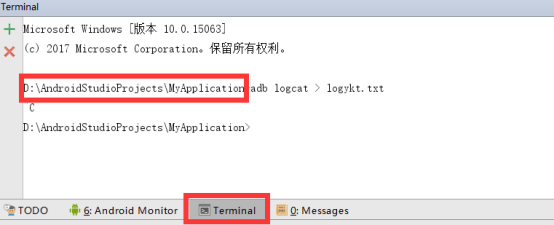 adb logcat > d:/log.txt (截取好的log信会保存在D盘根目录)